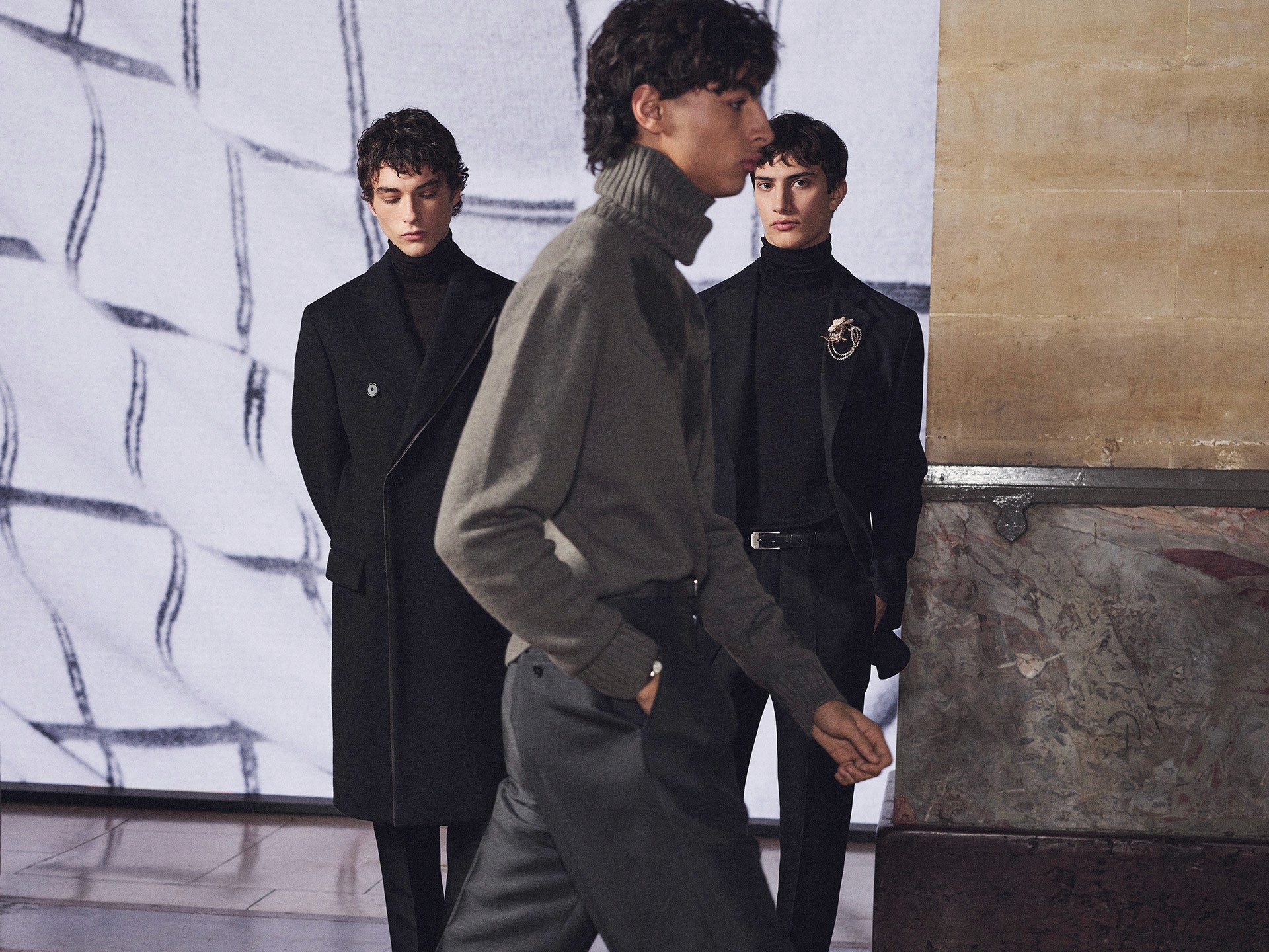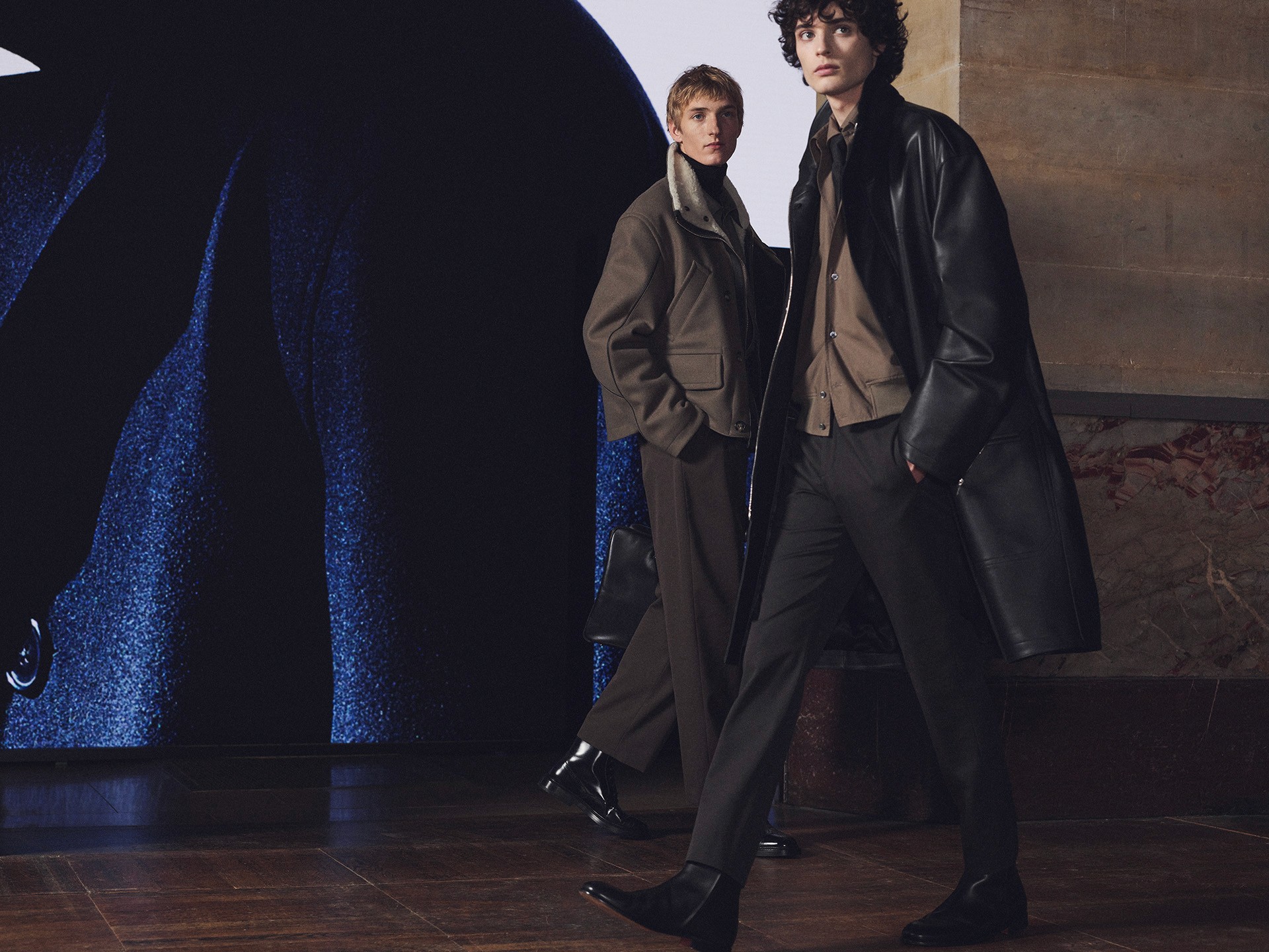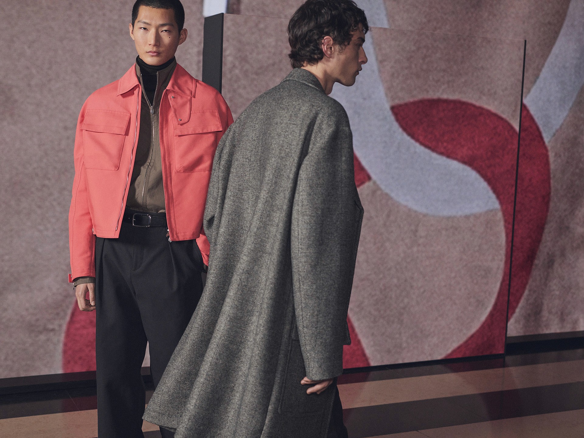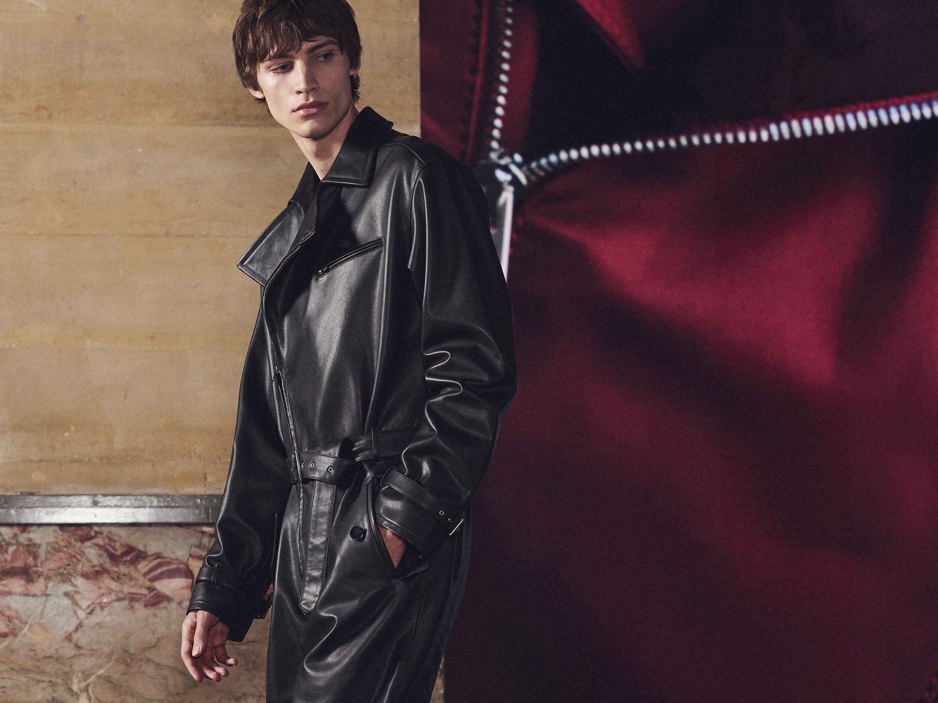 Die Kollektion zeigt Kleidung als Lebensbegleiter. Mäntel aus Lammfell, Anzüge mit Tennisstreifen in Leder, reversible Cashmere-Coats – sie alle wirken vertraut und doch neu, wandelbar und doch konstant. Der Geist dieser Mode liegt im Detail: versteckte Prints, doppelte Verschlüsse, Kontraste zwischen rau und weich.